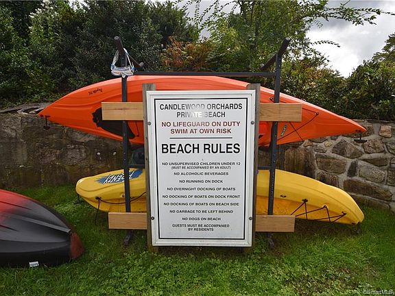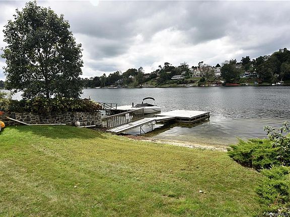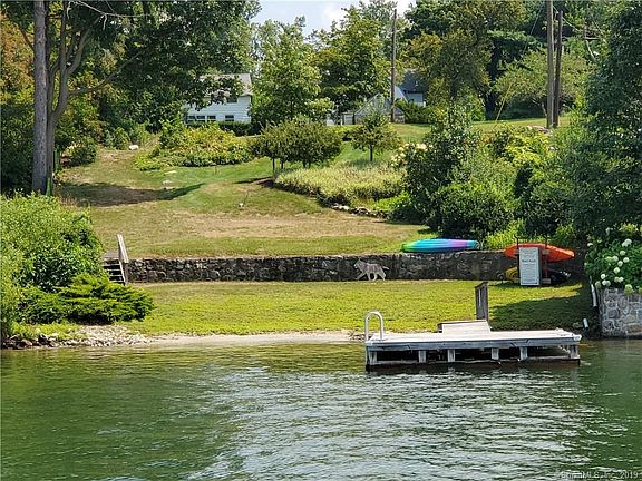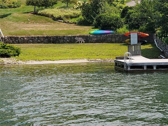 Candlewood Lake Community home with Beach access and water views. Hip styled ranch with green house attached can be used as a solarium with access to house. New roof, vinyl siding, Large newer eat-in kitchen with large dining area. Dining Room has access to yard and has a large closet could also be office or additional bedroom. Hallway has pantry closet and Powder Room. Large living room with beamed ceiling hardwood floors, tongue and groove pine walls, fireplace and huge picture window that looks over the lake. 3 good size bedrooms with hardwood floors and great closet space. The main bath is huge with tub shower, floor to ceiling tiled walls and tiled floor. Lower level needs a little TLC, has great living space with fireplace, dry bar, wood floor, built-ins, kitchenette and full bath. Also access to good size garage. Candlewood Orchards association fees maintains beach, roads, water etc. Candlewood lake amenities without the taxes and price tag Location is awesome. minutes to restaurants, shopping, schools and hiways.