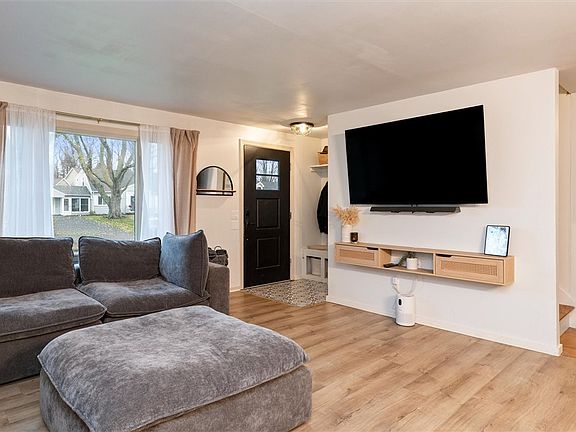 Step into a bright, open-layout 4 bedroom / 1.5 bath home where thoughtful design meets everyday function. The main level features a professionally designed kitchen with clean lines, and a movable island—pull it into the action for gatherings or slide it aside for extra prep and flow. The refreshed full bath echoes the kitchen’s modern palette for a cohesive, move-in-ready feel.