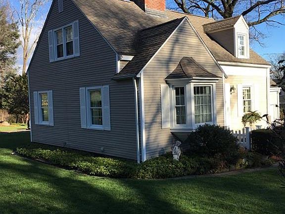 This expanded Dollhouse Cape has been beautifully kept and loved for many years. Offering a lovely front to back living room with a sunny bay window and cozy brick fireplace. The formal dining room has a full wall built-in hutch. The eat-in kitchen leads to a deck that overlooks a park-like back yard. Upstairs you will find 3 bedrooms, a full bath and a family room with a walk-in cedar closet and a built-in book shelves. Pretty hardwood floors grace most of this home and there are lots of closets and storage space along with a 2 car garage with newer garage doors. Newer Harvey windows, storm doors and radiator oil heat help keep the utility bills down. Come see this lovely home, you won't want to leave!