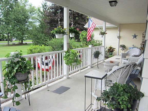 2548 sq ft Custom Colonial with wrap around front porch suited for watching evening sunsets or drinking your morning coffee conveniently located & accessible to shops parks and several major highways 2548 sq ft on floors 1 & 2, private 3 acre lot beautifully landscaped Park-like rear yard w/large deck features gazebo Home's 1st floor was designed with entertaining in mind Offers open floor plan and sun drenched rooms Family room w/wood burning fireplace Spacious 1st floor laundry & 900 sq ft walkout finished basement 6 panel doors natural wood trim Anderson windows Walk-up attic Wood Deck off Kitchen Attached 2 car garage above-ground pool storage sheds & playhouse Mature shade and fruit trees Wild flower gardens to attract hummingbirds/butterflies