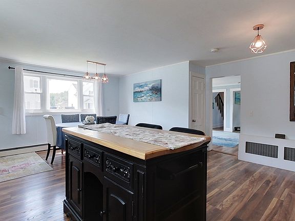 This 4-Bed, 2-Bath charmer is ideally located just around the corner from the town center, local restaurants, the rail trail, and offers easy access to Route 113 and the MA/NH line. Inside, you'll find a spacious eat-in Kitchen with center island, natural-toned cabinets, and beautiful multi-toned flooring that flows into the open Dining Room. The sunlit Living Room leads to a guest Bath with laundry hookups and a cozy Family Room. Tucked privately off the kitchen is the Primary Suite with updated ensuite featuring a roll-in shower and light-toned laminate floors. Upstairs features 3 additional bedrooms, one with a walk-in closet. A clean, neutral palette throughout makes it easy to move in and make it your own. The fenced backyard offers a firepit, shed, and tons of space to entertain on over a ½ acre lot—with plenty of off-street parking and a paved drive. Offers Due Monday Aug 11 by 12 Noon