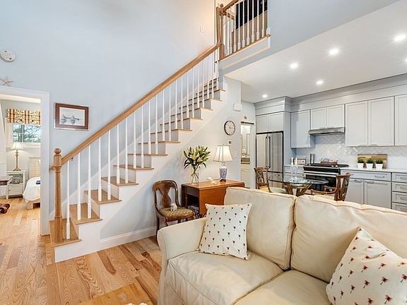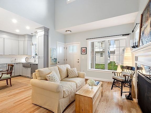 Charming 2 year young Cottage-style detached home features two-bedrooms & two full baths. First floor main bedroom, 2nd floor bedroom & loft area, finished basement Bonus room for maximum enjoyment. Soaring 18’ living room height + 9 ft. ceilings throughout; spacious open floor plan adds to comfortable light-filled rooms with elegant upgrades including natural gas fireplace, designer kitchen showcasing Folkstone Shaker cabinets, quartz counters, upgraded stainless appliances, stylish millwork & trim. Maple hardwood floors, upgraded tiled baths, high efficiency heating & cooling, detailed mouldings and 2-panel doors included. Front farmers porch, rear patio and low maintenance amenities are included in this elegant energy-conscious new home built in 2021. Nearby attractions include Stonehill College, Langwater Farm, Children’s Museum of Easton, Borderland State Park, fine dining, brewery, golf courses.