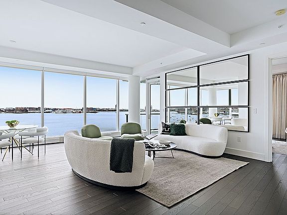 Spectacular corner residence at Twenty Two Liberty with breathtaking, panoramic water views of Boston Harbor and the city skyline. The expansive wall of windows provides a constantly changing backdrop of vibrant colors that anchors the main living space. The floor plan flows effortlessly with an oversized living and dining area open to the kitchen with custom cabinetry. The primary suite’s corner exposure offers incredible sunrise views overlooking Fan Pier park and marina while the second bedroom and study provide flexible living space. Fine finishes throughout the residence including European hardwood flooring, marble baths and high end fixtures blend seamlessly with the unit’s many customizations including luxurious wall coverings, motorized shades and custom closets. As the sun sets, host friends on the private balcony before exploring the Seaport’s many shops and restaurants – all steps from the building’s front door. Enjoy world class amenities including 24hr concierge services, resident lounge and fitness center. One self-park, garage space included, just steps from the private resident elevator.
