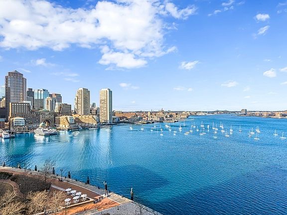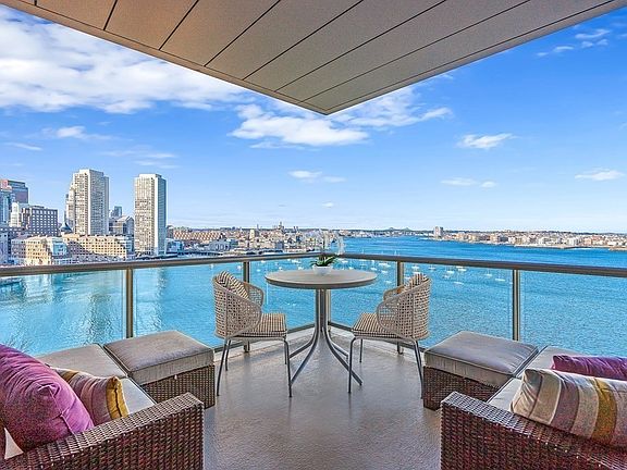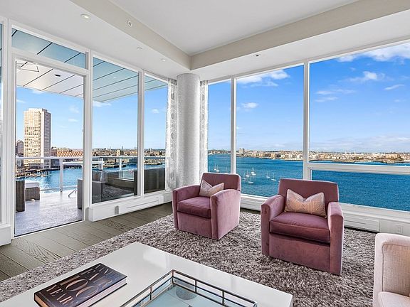 Unobstructed Water and City views from this sprawling residence on the upper floor of 22 Liberty. Spanning over 2,100 SF, this open floor plan offers floor-to-ceiling windows, 11-foot ceilings, and direct water views from each primary room. Living and dining area with custom built-ins and lighting, dark HWD floors, and oversized corner balcony overlooking the harbor. Chef’s kitchen features high-gloss white lacquer cabinetry, high-end appliances, custom countertops, and backsplash. Master suite with stunning water views, customized walk-in closet and ensuite bath with marble soaking tub, walk-in shower & double vanity. Guest bedroom offers custom built-ins, water views, & walk-in closet. Comfortable den/family room completes this designer home. Two garage parking and private storage. Full-time concierge, fitness center, residents lounge, marina & guest parking. Bustling waterfront location with art, culture, restaurants, shops and events near transportation, Airport & Downtown Boston.