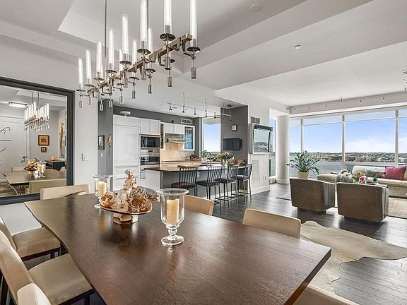 One of the most sought-after residences in the Seaport. Located at 22 Liberty, The Seaports finest doorman building, this rarely available C unit has direct Harbor & City views from every room. Foyer w/ powder room opens to show-stopping living & dining space with 10' ceilings. Large living room w/ panoramic views steps out onto private balcony high above Harbor. Oversized kitchen w/ chef's appliances, pantry, granite island & large picture window. Dining area w/ custom wallpaper & chandelier is perfect for dinner parties. Luxurious primary bedroom w/ stunning views, private balcony, 3 large custom closets & en-suite bath in Italian marble w/ double vanity, soaking tub & glass shower. Guest bedroom w/ custom closet & en-suite bath. Study w/ custom built-ins & water views. 2 garage parking & private storage. 22 Liberty is the Seaport's premier full-service building w/ concierge & doorman, marble lobby, resident's lounge & deck, boardroom & fitness center. Steps to Fan Pier Marina.