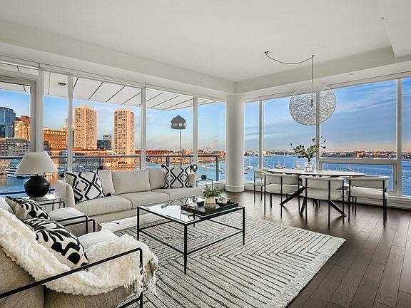 Enjoy the pinnacle of luxury at Twenty Two Liberty in Boston's Seaport. This stunning corner residence boasts two bedrooms plus a large den with breathtaking views of Boston Harbor and the city skyline throughout. Floor-to-ceiling walls of glass frame the brilliant surroundings and flood the home with natural light. At the center, an open-concept living and dining space connects to a spacious private terrace directly overlooking the harbor. Ideal for any occasion, the chef's kitchen is outfitted with top-of-the-line appliances from Sub Zero, Miele, and Wolfe, as well as an adjacent walk-in pantry. The primary suite features stunning water views, a large walk-in closet, and a marble-clad bathroom with a glass-enclosed shower and soaking tub. An en suite guest bedroom and a bonus room that can be used as a well-appointed home office offer ample space for flexible living. Two garage spaces complete this extraordinary residence, set in one of the Seaport's most sought-after addresses.
