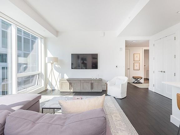 Live in the Seaport's premier full-service building in this stunning Southeast facing one bedroom plus den at exclusive Twenty Two Liberty. This coveted floor plan features one and a half bathrooms, open concept kitchen, floor-to-ceiling windows, custom closets, electric shades, and private balcony. The kitchen is meticulously appointed with top of the line appliances by Wolf, Miele, and Subzero. The bonus room is perfect for a home office or small guest room. En suite master bathroom boasts italian marble, soaking tub, glass shower, and double vanity. 22 Liberty has 24 hour concierge and doorman, fitness center, caterers kitchen, and beautiful resident lounge with deck overlooking the Harbor. Unit comes with one deeded garage parking space.