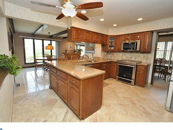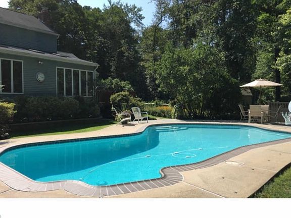 Now is the time to make this one of a kind home in desirable Sherwood Forest your own. You can move in just in time for the start of the new school year and take advantage of the gorgeous heated Gunite pool well into fall. The first floor has been re-designed with an emphasis on quality and living. The kitchen features granite counter tops, stainless steel Electrolux appliances, stone back splash and tile floor. The location of the kitchen gives you a great view of the backyard and allows you to be part of the extended family room which boasts a stone fireplace with built in shelving, beamed ceiling and Anderson sliding doors. This room flows nicely into the eating area of the kitchen and into yet another comfortable living space. There are skylights which add much natural light to accent the detail and craftsmanship of this unique home. There is the first of 2 beautifully appointed full baths located conveniently near another set of sliding doors leading to a 2nd deck. Off the deck is a completely redone Gunite pool with spectacular hardscaping. The two decks are surrounded by landscaping that will delight any gardener. Much love and care has been put into this outdoor oasis and has created lasting memories with many more to come for you, the the new homeowners. Back inside there is much more to discover. Also on the main level there is a living room, dining room, updated half bath, and the relocated laundry room transformed into a small office. Hookups remain to easily convert back. The second floor has 4 nicely sized bedrooms, and another lovely renovated full bath. There is a walk in closet in the 2nd bedroom (in addition to 2 other closets) where a 2nd full bath for this level could be added as it backs to the plumbing from the other bath. As you tour this lovely home you will notice the custom window treatments, ceiling fans and attention to detail the homeowners have taken. They have maintained both the inside and outside meticulously. Newer windows, brand new heating system, and Gunite pool are just a few reasons to come for a visit. The community of Sherwood Forest offers lakes for swimming and fishing, tennis courts, playgrounds and an outdoor gazebo/cooking area perfect for gathering at the lake. Medford Schools are highly ranked and the quaint town of Medford hosts parades, festivals, and offers shopping and dining. What are you waiting for...make your appointment today.