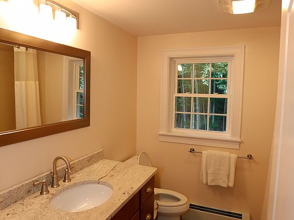 Home was completely remodeled in 2016. These items included the following; New heating system, forced hot water with high efficiency gas boiler. All new vinyl siding with aluminum trim. Two dormers added, new roof with laminated shingles. New Mahogony deck added to front of the house. New lawn with irrigation. New well pump and tank, finished basement with plank tile flooring. New kitchen cabinetry with granite slab counters. New appliances with gas range. All windows replaced with double glazed low e glass. New bathroom tile floors, toilets, shower and surround with granite vanity. New gas fireplace with cultured rock surround. New Underground utilities and paved driveway. House to include all coordinating furniture, fabrics, bedding, appliances and television,