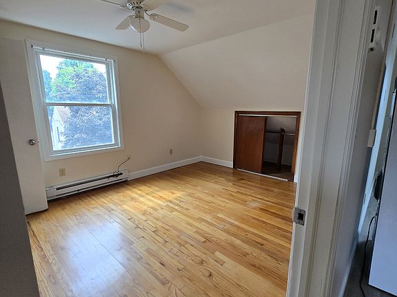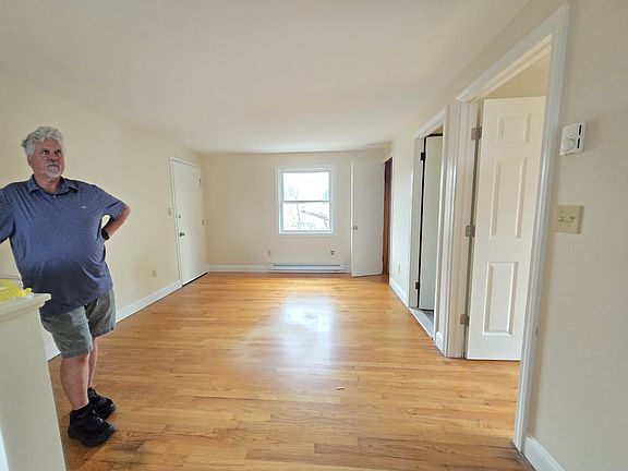 One bedroom apartment on the third floor of an 8 family building. The eat in kitchen has an open floor plan to the living room. Hardwood flooring in the living room and the bedroom, laminate flooring in the kitchen. The building has a shared- coin operated laundry room. Lots of closet space including a coat closet, linen closet, and a bedroom closet the length of the bedroom. Property located right off of Route 72 for easy highway access. The apartment comes with one parking spot. You may have additional parking spots for an additional $50 a month. Tenant is responsible for the electricity (heat and hot water are electric) The landlord pays for everything else (water, landscaping, snow removal, garbage disposal, etc.). Cats are allowed with an additional security of $500 and a $25 monthly pet rent.