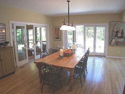 This 2 story post modern home is located about 5 minutes from East Hampton Village. It is very private at the end of a cul de sac. There are 4 bedrooms, 4 bathrooms, cooks kitchen, large dining area, large bright living room, screened in porch and cac. The heated pool is non chlorinated and there is a hot tub. Available for July $35,000......R R # Pending..folio # 92532