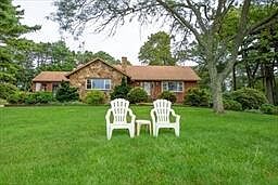 Experience the serenity of YOUR OWN PRIVATE BEACH and the expansive country estate. This charming ranch-style home is perched atop a hill, offering distant ocean views and a thoughtfully designed floor plan. With 2 bedrooms on the main level, a spacious eat-in kitchen, a sunroom, and a cozy living room, comfort is paramount. The lower level features a generous family room with a wood stove an exercise room and 2 bedrooms. The estate includes a versatile 4,000 sq ft steel building with 7 bays, concrete floors, and electricity--ideal for housing horses, boats, collection of cars or agriculture and a well. Surrounded by peaceful natural beauty and abundant wildlife, this property offers endless possibilities for expansion and enjoyment. Its prime location provides easy access to all major highways, it is less than 1 hour to Boston and Providence, Abuts Bay Pointe Country Club,10 minutes to the Bourne bridge making it a perfect blend of rural tranquility and city convenience.