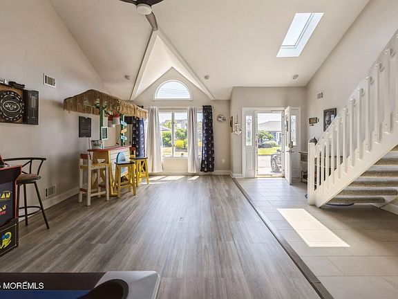 This stunning waterfront home has a spacious and updated interior with newer flooring and carpet, modern bathrooms, and an open floor plan. It features a large living room, dining room combo, a family room with a wood-burning fireplace, and a nice Eat-in kitchen. With 5 bedrooms and 4 bathrooms, there is plenty of space for a large family or entertaining guests. The primary bedroom suite is luxurious, with two walk-in closets and a balcony overlooking the water. The master bathroom features a soaking tub for relaxation. Outside, the pool is surrounded by a large deck and hot tub, perfect for outdoor entertaining. The home also has quick access to the open bay, making it ideal for water enthusiasts. Located in a desirable waterfront community close to beaches, shopping!