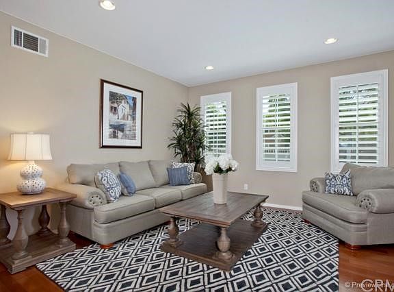Entertainers delight in this sought after family neighborhood. This rare oversized corner location features a cascading waterfall for serenity and a warm fire pit for those cool evenings. Custom BBQ island is perfect for dining alfresco in the warm summer days. The large living room flows into the gourmet kitchen, with center island, and is adjacent to the family room for a "great room" feel. This room includes a custom built-in entertainment center and a cozy fireplace. The master suite has a walk in closet, dual sinks and a separate soaking tub. Rich hardwood flooring covers the entire first level and elegant plantation shutters throughout the home. Enjoy all that Ladera Ranch has to offer, numerous pools & clubhouses, water park, skate park, hiking/biking trails, plus award winning schools and much more.