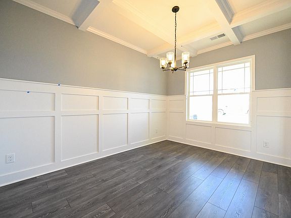 The Naples plan offers spacious living w/ 1st floor master bedroom and 3 generous sized bedrooms & a bonus room upstairs. Master bath w quartz counters, separate shower, garden tub & walk-in closet. Laminate hardwoods throughout 1st floor living areas, 1/2 bath & mudroom. Open concept kitchen w/ large island, granite countertops, tile backsplash, s/s appliances. Dining room w/ coffered ceiling and wall wainscotting.