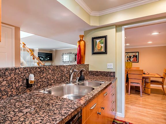 This is a fabulous 3 bedroom 2.5 bath townhouse in prime location of the complex. Featuring updated kitchen and baths, hardwood floors, 2 master suites, 2 first floor patios and an upstairs balcony. Light and airy this homes is ready to move in to. Recently painted, crown molding, newer baseboards, 2 car garage and loads of storage including a spacious pantry. Complex features 3 pools and a club house and dry sauna. Walk to Top Los Altos Schools, shopping at Whole Foods or Safeway and close to major transportation and downtown Los Altos. Inside laundry, wood burning fireplace , spacious bedrooms, truly a home for the discriminating.