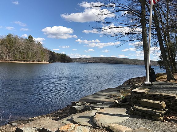 Make your dockside dreams come true! Exquisite 4 bed, 2.5 bath Wallenpaupack lakefront home w/dock & 75' of lake frontage captures the very essence of lake living. The artfully designed kitchen with custom finishes & Smart appliances seamlessly flows into the dining & living area. A beautiful stone fireplace sets the scene for cozy times. Large windows afford excellent lake views from all 3 levels. Exterior stairway & lakeside deck are maintenance-free Trex for less time working/more time enjoying the lake! Other features: updated baths, central air, & all new flooring. Detached 2-car garage is a huge bonus! Easy walk to the water's edge. An access road allows for driving a car to the lake side of the home. Adjoining lot w/ 50' of frontage is community-owned & will remain as green space.