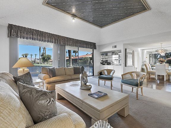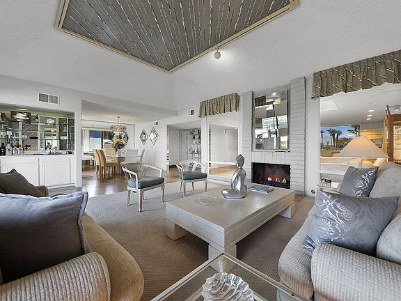 The largest model available at Sunrise Country Club, make this your own with 2 bedrooms plus den/family room, 2 baths, and more than 2,100 feet of living space! This Madrid Plan is light and bright. The large open concept living and dining room features a fireplace, vaulted ceilings, and fabulous golf course views with pool and spa next door. Right off the living room there is expansive patio space to enjoy desert outdoor living at it's finest. The largest built model, overlooking the 15th green with a panoramic view at ever popular Sunrise Country Club. Atrium has been already converted, 2 Car garage with available golf cart parking. Sunrise Country Club is a guard-gated community with 746 residential condos, an 18 hole golf course, 9 championship tennis courts, 10 Pickle Ball courts and 21 swimming pools and 19 spas. Club amenities include golf, tennis, fitness center, clubhouse dining room & grill at discounted prices.