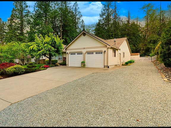 Rare opportunity to own a FEE SIMPLE (no lease) custom-built rambler, boasting a great room concept. Step into a haven of tranquility with mature, landscaping, and enjoy a park-like ambiance, with a greenbelt backdrop and privacy offered by the fenced backyard. A deck and pergola offer a serene retreat where you can unwind and entertain. Home offers a free standing fireplace perfect for those crisp chilly days. Enjoy the PNW lifestyle with community activities such as golf, tennis courts, and a club house, providing endless opportunities for recreation and socializing. Explore the beauty of two private beaches and take advantage of the free boat ramp, enhancing your waterfront living experience.