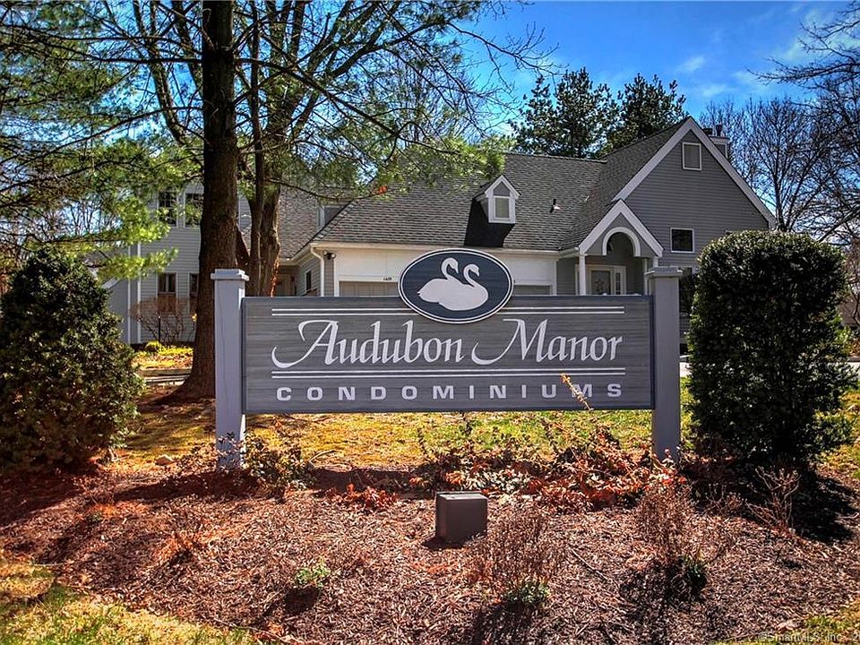 Audubon Manor end unit Townhouse offering generous living space with 1 bedroom, a 2nd floor loft, cathedral ceilings, fireplace, deck, full basement for storage or additional living space and a one car attached garage with interior access. This property is adjacent to Mondo Ponds Nature Preserve and walking trails, convenient to downtown Milford, beaches, shopping, I95 and the Merritt Parkway.