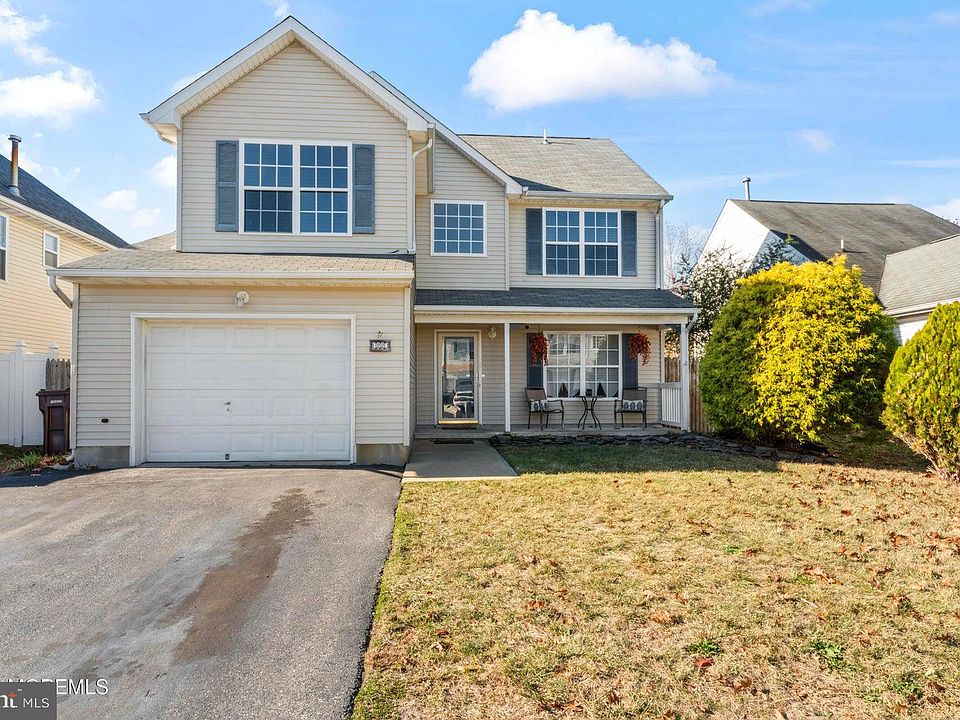 Welcome to your dream home! This stunning center hall colonial boasts an inviting two-story foyer with a beautiful balcony that leads to three spacious bedrooms and two full baths upstairs. The primary suite features an ensuite bathroom and a generous walk-in closet, providing a perfect retreat. Downstairs, you'll find a warm and welcoming country kitchen equipped with a full stainless steel appliance package. Sliding doors open to a serene back patio, perfect for outdoor gatherings. The cozy living area, highlighted by a gas fireplace, creates a wonderful space for entertaining family and friends. The fenced backyard surrounds a lovely built-in pool, offering a private oasis for relaxation and summer fun. Make your appt today !