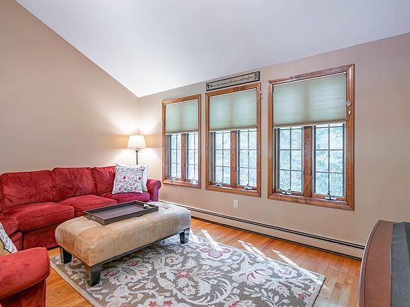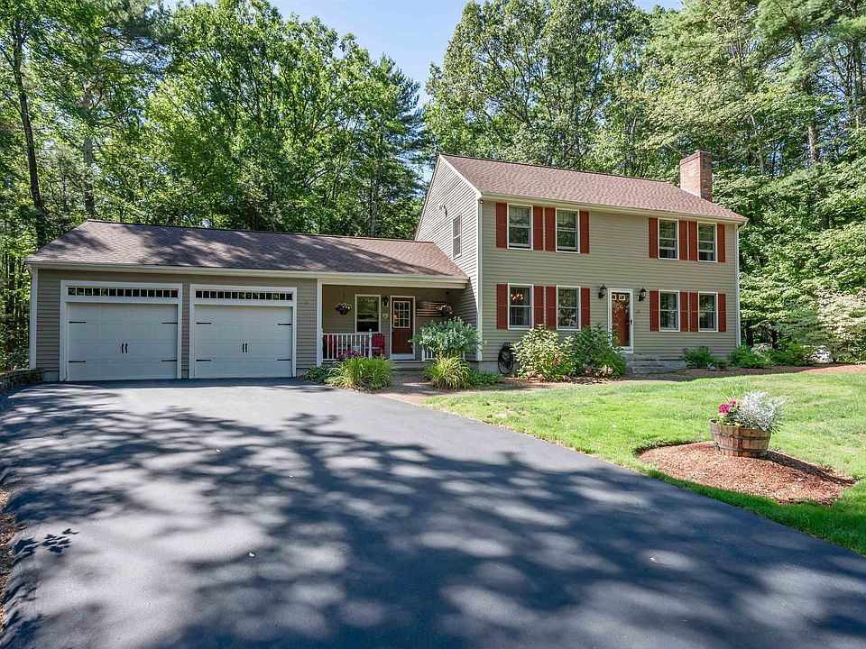 Cradled by lush landscaping on two serene acres, this impeccably maintained Colonial offers light-filled living and a layout designed for both gathering and retreat. A welcoming front porch leads into a warm, thoughtfully arranged interior which balances charm and comfort from the step-down family room with cathedral ceilings to the cozy living room anchored by a wood-burning fireplace. At the heart of the home, a four-season sunroom with exposed beams and skylight windows creates a peaceful space to sip morning coffee or watch the seasons unfold. The large eat-in kitchen features maple cabinetry, granite countertops, a breakfast bar, and space for everyday meals, while a nearby formal dining room offers room to host. The primary suite on the second level consists of dual closets and a private full bath with a nicely designed tiled shower. Rounding out the home is a versatile lower level offering a freshly painted office with new carpet, plus extra room for storage or a workshop. Enjoy your private backyard with a firepit and peaceful surroundings all while being situated in a sought-after neighborhood setting. With a freshly painted exterior, a recently replaced roof, a whole house generator, and multi-zone heat, this home offers a setting that feels both timeless and well-prepared — ready to support everyday living, seasonal traditions, and the moments in between.