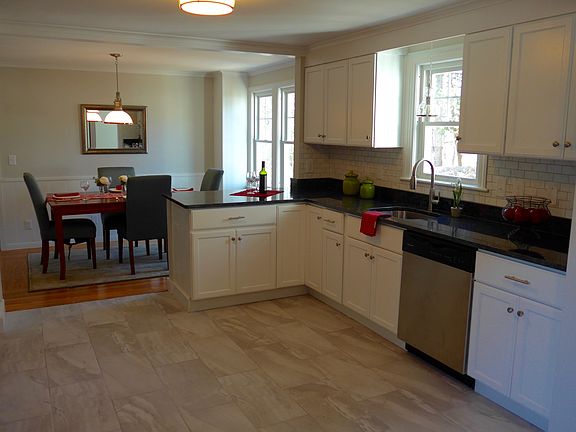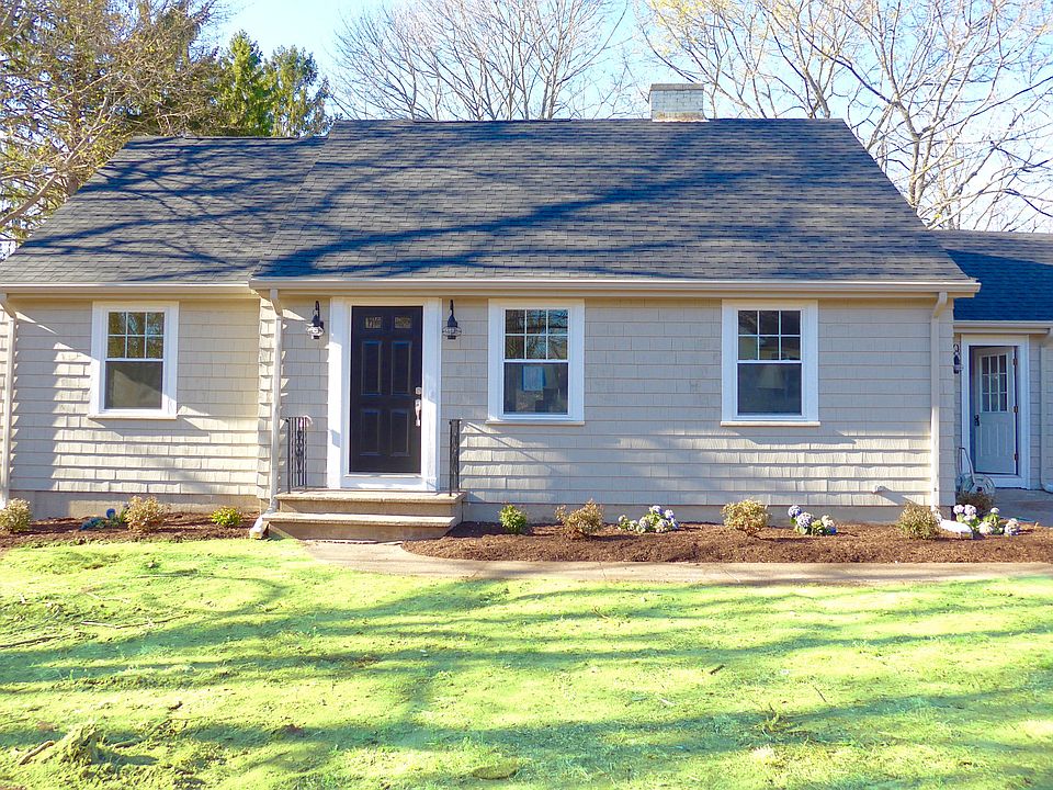Four bedroom Cape meticulously redone without losing any of the previous charm! Spacious and open. Kitchen boasts an abundance of cabinets and granite countertops, stainless steel appliances, tile and backsplash. Open to dining area with built in cabinet. Hardwood floors throughout first floor flow into sunlit living room with fireplace and built in bookshelf, down the hall and into two bedrooms on first level with great closet space. Full brand new bathroom on first floor. Ascend the hardwood stairs to large bedroom on the left with cedar closet, laundry upstairs, full bathroom plus teen suite or office complete with two extra large closets. 400 square feet of basement is finished with built in bar. All of this PLUS sun/mud room, attached two car garage, oversized garage/barn in back, brand new septic system and 1.5 acres!