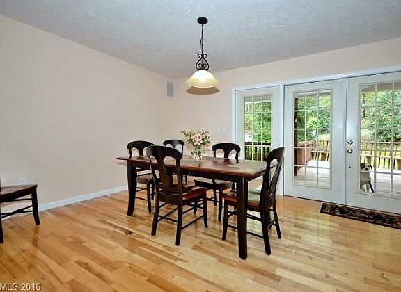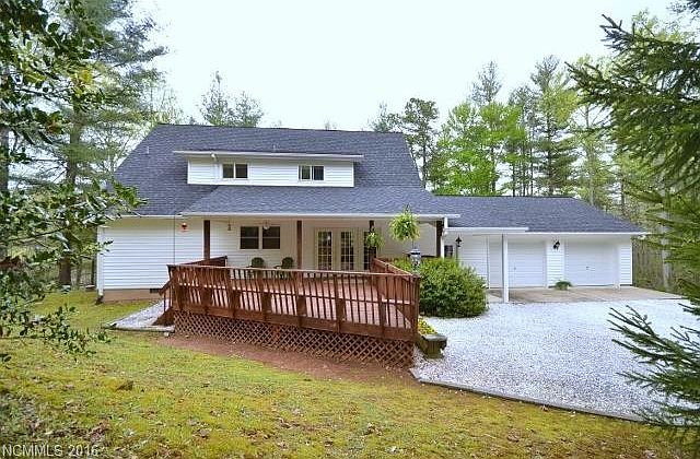 Sunny, 3BR/2.5 BA traditional home with open floor plan for easy living. Kitchen opens to DR with French doors to large front deck. Very comfortable, spacious LR with gas FP and tile surround mantle. LR door opens to back deck. Large master on main and large master bath with jet tub. Wet bar alcove. Two BR and a bath upstairs. Quality craftsmanship in this casual yet sophisticated home. Lots of hidden nooks. Oversize 2 Car garage, room for workshop. Serene woodsy setting. 9 miles from Brevard.
