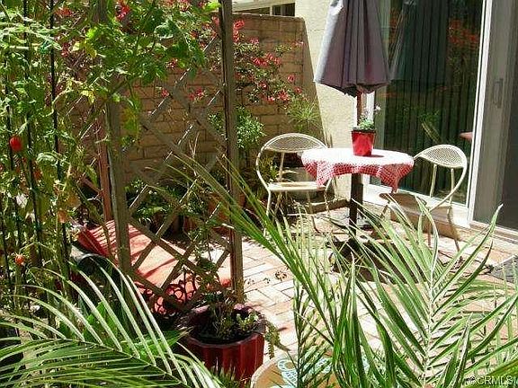BEAUTIFUL THROUGH OUT. Rare SINGLE LEVEL HOME tucked away on a quiet cul-de-sac. Nicely upgraded patio home boasts two serene bedrooms, two full bathrooms and a bright, light, open floor plan with large living room with fire place. Adjacent dining room leads out to the private back yard. The kitchen is enhanced with a beautiful custom counter top and tastefully designed cabinets. Bright sun peeps through the garden window that looks out to a private front flower and herb garden with organic vegetables, mature fruit trees such as Pear, lime and grapes, making it a perfect place for a cup of tea or coffee while watching playful hummingbirds flock about the yard. Both bathrooms are upgraded with artistic counter tops and up to date cabinets. Beautiful light color wood-like floorings through out. Second bedroom and living room have slider doors that open to the tranquil backyard bordering a quiet greenbelt. Large two car detached garage with huge storage shelves for you collectors! Come and enjoy this desirable single level home in a great quiet neighborhood. Great central location, to nearby University of Irvine, walking to university high school, parks, Library, shopping and fantastic schools..few minutes to 405 and 73... Don't need to preview!