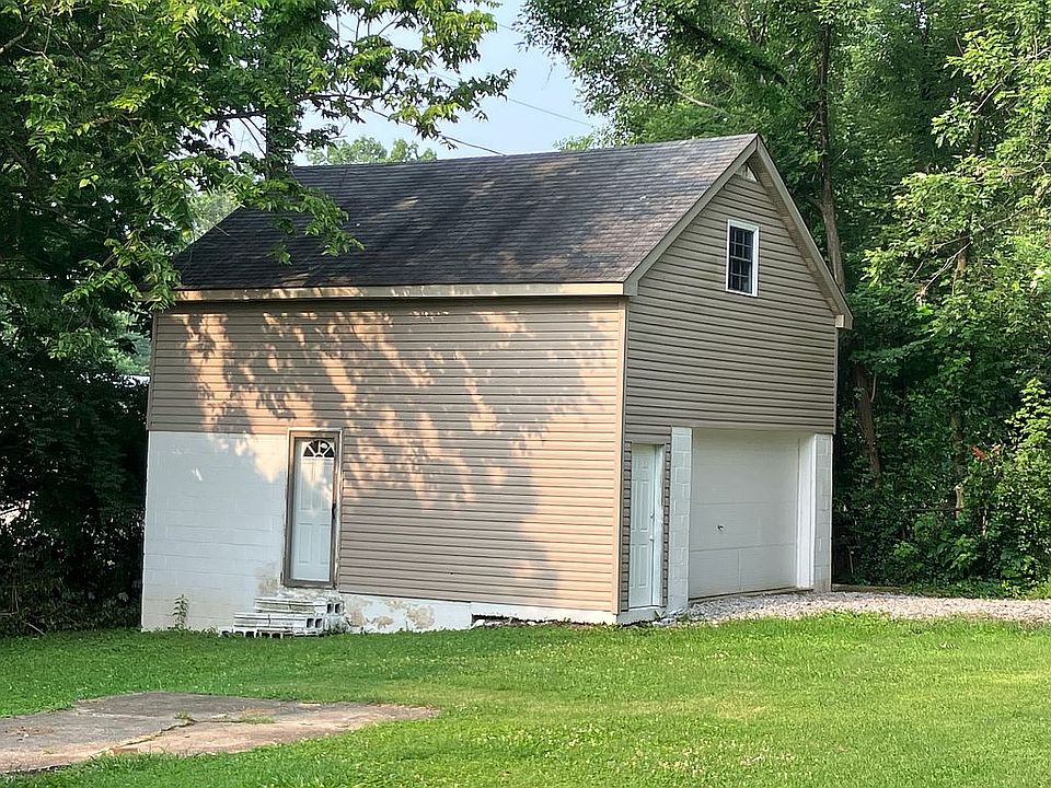 Well built 2 car garage with partially finished loft. Partially finished cabin made from antique Kentucky barn wood.