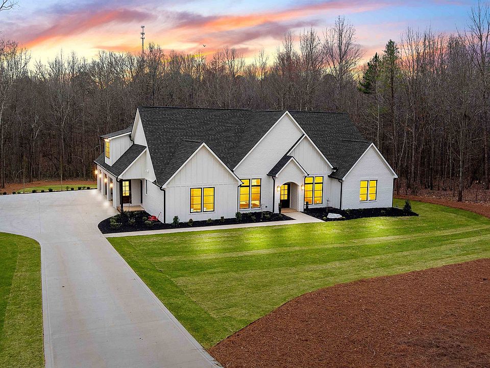 Check out this 3700 sq ft Modern Cottage Home! The architectural details on this 4bds/3bath with bonus home are so beautiful… you can cross decorating off your list. This foxy listing offers 3 private acres on a quiet street. Sitting in the center of a large yard, the home’s sleek black windows pop off the white brick exterior and green yard. From the moment you enter the French doors, the cathedral ceilings and luxury LVP floors give a feeling of spacious warmth. This open concept home has so much attention to detail! From the sleek living room fireplace, ample pantry and custom interior doors, this home has a designer flare that will not disappoint. High-end white inset cabinets brighten this kitchen, and the farmhouse sink, quartz countertops and cozy coffee bar finish the look. Drink your morning brew on this amazing T&G covered patio that is perfect for entertaining on those long summer nights. With no restriction on this property, that pool you’ve been dreaming of will fit nicely in this flat backyard. The hard surfaces in this main bedroom are gorgeous, y’all. A freestanding tub centered with a cathedral ceiling and tile walk-in shower makes this bathroom feel spacious. Who wouldn’t want double vanities and double closets? Chores are a breeze in this home when the walk-in-closet opens up into the laundry room! Work from home? A carpeted bonus room above the garage in this livable floor plan offers the perfect space for an office, man cave, play room, craft room, or guest room. This chic home is conveniently located in Taylors, and is in the desirable Mountain View Elementary and Blue Ridge school district. This listing is a hot-one, so don’t delay. Call now for your private showing!!
