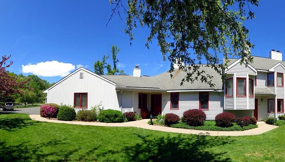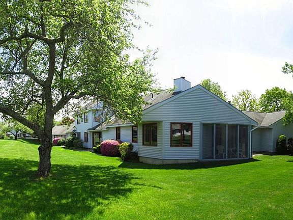 Move right into renovated, ranch style condo & enjoy single level living in beautiful Upper Orchard! 1352 SF comprise large, open living-dining area with fireplace and custom, built-in book shelves. Eat-in kitchen touts cherry cabinets. 2 bedrooms include master bedroom with new built-in shelving, remodeled master bath & over-sized shower, cherry cabinets with Corian counter top. Likewise 2nd bathroom features cherry cabinetry, Corian counter top and shower. From three season, screened porch you enjoy views of landscaped courtyard dotted with apple trees. This unit has the advantage of an attached, one car garage with direct access to unit and plentiful storage space. Upgrades: gas, hot water heater, siding, garage doors, windows, gutters. Enjoy sunny So. Amherst, close to Atkins Market, Eric Carle Museum & Holyoke Range.