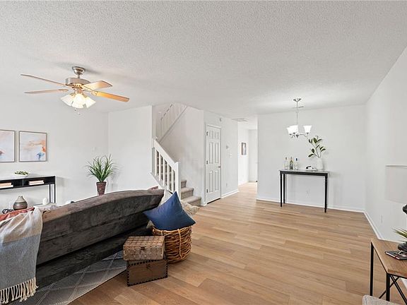 Welcome home to this beautifully updated 2 bedroom, 2.5 bathroom townhome! Featuring brand-new LVP flooring on the main level, fresh carpeting upstairs, and a modern touch throughout, this home is move in ready. The kitchen shines with new quartz countertops and all new appliances, making cooking and entertaining a breeze. Each bathroom has been thoughtfully upgraded with new flooring, new fixtures and new toilets, ensuring both style and comfort. Freshly painted from top to bottom, this home offers a bright and welcoming atmosphere. Enjoy low maintenance living with the perfect blend of modern upgrades and cozy charm. Move in just in time for summer to enjoy the neighborhood pool which is just a short walk away.
