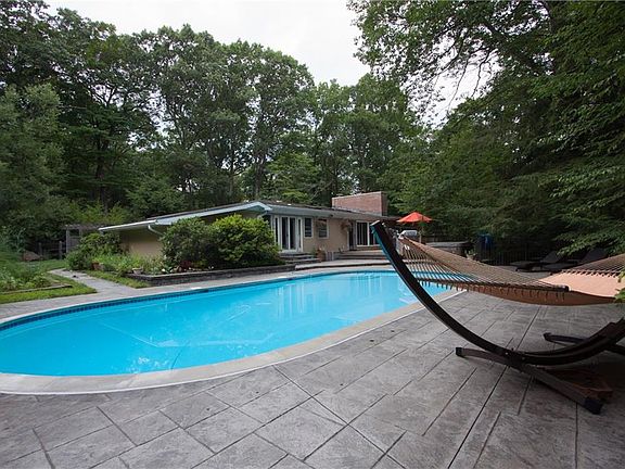 Wow! Sought after area near RT 4 & West Hartford Center, you must see this stunning comtemporary ranch that is totally updated, dramatic & so "CHIC"! This home is amazing! Fall in love w/ the modern feeling of this open floor plan design, perfectly sited on a private 2 acre lot showcased by an inground pool + separate hot tub on a cul de sac street. The current owner put on an entire new roof & the whole home now has soft cathedral ceilings highlighed by many skylights bringing light & sunshine streaming in.The foyer introduces you to a spacious living room w/ built ins, a wall of glass windows & door leading to the deck & double sided brick fireplace.The dining area features a wall of built ins of maple cabinetry & opens to the new gourmet's delight, custom maple cabinet kitchen w/ new SS appliances & new granite + a breakfast bar island. This area is open to & enjoys the wonderful family room w/ FP & three walls of brick amid all the glass windows & door leading to the deck, patio, pool, hot tub & serene yard bringing the outdoors in. New custom brazilian floors comliment the room. A stariway leads to the walk out rec room and deck. New tile floors invite you to the 3 bedrooms. The master views the lovely yard w/ french doors to the patio. The sumptuous bathroom has been totalty redone & updated for your pleasure. Two other bedrooms & another new full bath complete this level. Low maintenance landcaping, great outdoor & indoor living make this the best offering!