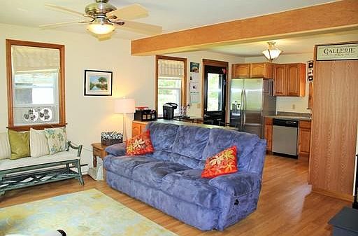 Bring your kayaks and your beach towels and enjoy lake life this summer! This sharp looking remodeled Ranch is located less than a half mile from Lake Arcadia and the town beach. The house features an open kitchen/living room with an efficient wood stove and a remodeled kitchen featuring stainless steel appliances & a breakfast bar. The spacious master bedroom was added in 2003 (APO) and features a slider leading to the patio, a large walk in closet and a partial basement underneath for extra storage. The flexible 5th room (currently used as a dining room) could also serve as an office. The full bathroom was recently remodeled with a new modern tile floor, new sink and toilet and features a convenient laundry area with storage. The house sits on a 1 acre, level, cleared lot with plenty of room for gardening and two sheds. With replacement windows and doors and a convenient location near Amherst, UMass & points south, this move in ready home won't last long at this affordable price!