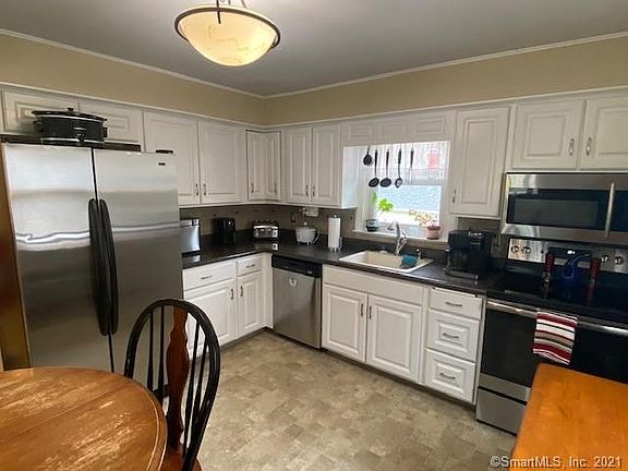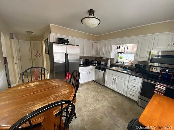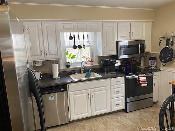 Welcome to this wonderful gem, located close to Rt 8 and 84. This well maintained home offers a new roof, vinyl windows, newer central air unit, 5 year old furnace, boiler combo with an on demand water heater. The newly remodeled eat-in kitchen boasts beautiful stainless steel appliances, tile floor, tile back splash with beautiful cabinets offering all new hardware. You will find custom trim including crown molding through out this home, wainscoting and a custom trimmed transom window with lighting between the kitchen and living room. There is a arched door leading to a very comfortable living room which offers plenty of space to decorate how you choose. The remodeled full bathroom features custom trim, tile floor and new fixtures. There is also 390 square feet in lower walk-out level that is finished and is used as a third bedroom/kitchenette. It can also be used for entertaining or a play area for children and still offers plenty of room for utility and storage. When you walk outside you'll find a covered patio, plenty of yard for entertaining and a detached 2 car garage. Schedule your private showing today before its...SOLD!