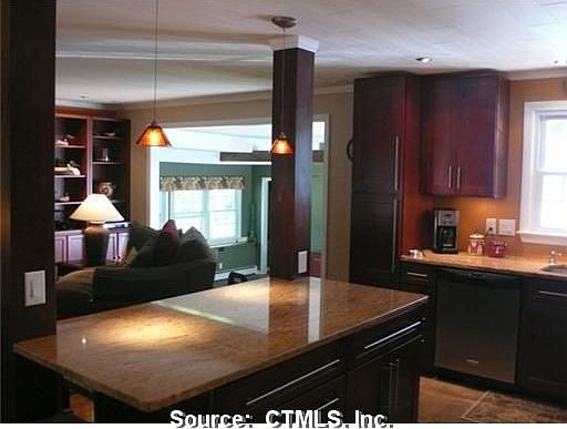 Walk to town from this sprawling, almost fully remodeled ranch. Three bedroom, cherry cabinet kitchen w/granite, family room with built in\'s, Screen porch, jacuzzi tub and views of the pond! Updates: Windows 2008, Roof 2008, Hydro Heat & AC 2008!