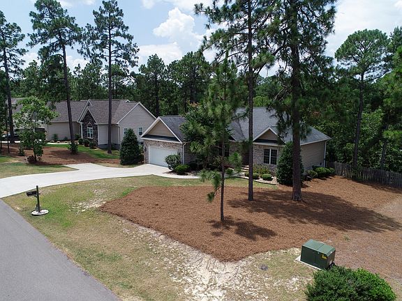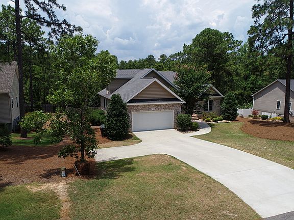 This beautiful brick home tucked back in the highly desired Pinehurst No. 6 neighborhood is full of elegance from the ornate front door to the gorgeous stone fireplace with accent lighting above. The wood flooring flows throughout the first floor living areas and into the master bedroom. Master bath features double sinks, tiled shower and separate garden tub, and an amazing closet with custom organizational units. In addition to the master bedroom, the first floor also has two additional bedrooms and full bathroom. The spacious second floor bonus features a full bathroom and functions well as a 4th bedroom or guest suite. The backyard is perfect for entertaining with a large deck overlooking a paved patio area with a fire pit.