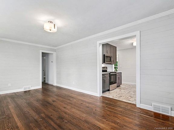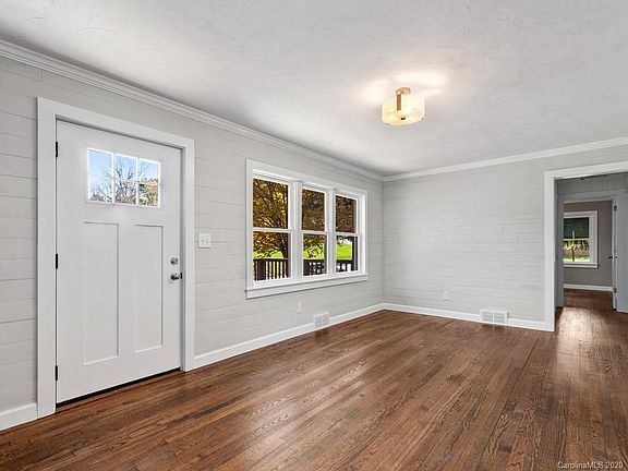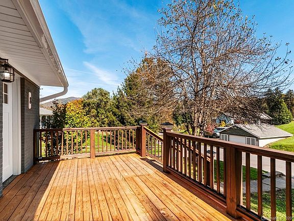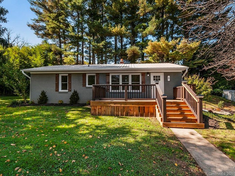 Move in ready & single level living! Updated & located in central location between Asheville & Waynesville. 2BD/2BA, tons of natural light throughout, kitchen with SS appliances, beautiful modern cabinets & built-ins, living room with wood floors, family room/dining area combo with sliding glass doors, master suite with walk-in closet, oversized walk-in shower/dual sinks/shiplap walls, laundry room for stackable washer/dryer. Level yard area and uncovered front deck is perfect for entertaining! Unfinished basement with single car garage.