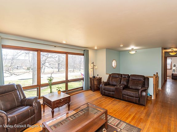 Welcome to this beautiful Raised Ranch home perfectly situated on a picturesque tree-lined street, in the town of Wappingers Falls! This spacious 3-bedroom, 2.5-bath home is a true gem sitting on over half an acre, offering the perfect balance of indoor and outdoor living, with thoughtful updates that enhance both its beauty and functionality. Inside, you'll find gleaming hardwood floors that add warmth and character throughout the main level. The generously sized bedrooms provide ample space, including a primary bedroom with its own private bath. Updated main bathroom, designed in neutral tones, create a fresh, modern feel. The bright and airy three-season sunroom is the perfect place to enjoy your morning coffee or unwind with a good book, bringing the beauty of nature indoors year-round. Fully finished lower level offers even more living space, with a fresh coat of paint, fireplace and a dedicated office area, ideal for remote work or a quiet retreat. Step outside to your above-ground pool with a large deck, making it the perfect spot for summer gatherings all season long. A concrete patio offering additional room for outdoor dining, barbeques or simply unwinding in your private backyard. Equipped with an irrigation system to keep your gardening lush and green with minimal effort, while the recently paved driveway adds to the home's well-maintained appeal. A large two-car garage with high ceilings provides ample storage and workspace. Located in a prime commuter-friendly area, this home is just minutes from Route 9, major transit options, shopping, dining, and places of worship, making everyday conveniences easily accessible. If you're looking for a home that offers space, style, and modern updates in a fantastic location, this is the one! Schedule your showing today and see all that this incredible property has to offer!