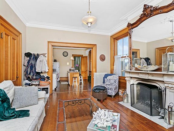 Dramatic one-bedroom dripping with shared patio and original detail on Monument Square available for lease. This floor-through apartment features original hardwood floors, towering ceilings, updated kitchen with excellent counter space and jumbo bedroom with great closet space. Enjoy original mantels, crown moldings and a location direction on historic Monument Square. Heat and hot water are included in the rent. No pets, no smoking. No pets. Heat and hot water included.