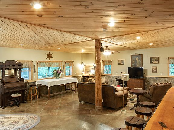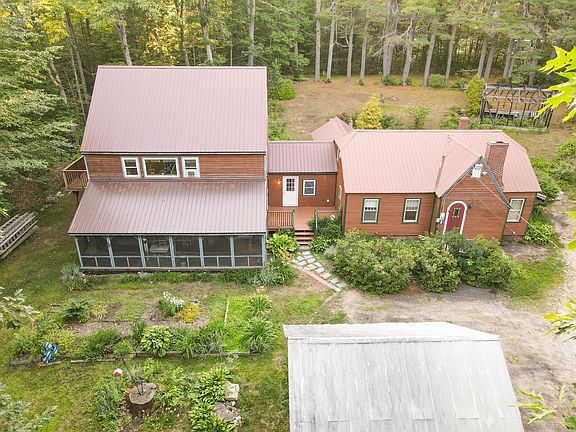 Architectural beauty welcomes you everywhere you look. When you step into the main foyer, you are immediately drawn into the large Gathering Room. The Gathering Room has everything from a live-edge bar, stone accents, beams, built-in shelves, pine ceilings, walls, and even artistically painted floors. The property was built in two phases, 1962 and 2008. Both phases have a mystique of their own. The original house has a kitchen, bath, dining room, and two bedrooms while keeping its original charm. The newer part was designed to accommodate a large family or possibly be turned into a bed and breakfast. Head up the custom-crafted staircase to the two additional bedrooms on the 2nd floor. Enjoy wooded views from the private balcony off each bedroom. There is a large unfinished bathroom ready for your design. With 3.38 acres, you will have plenty of room to start a small homestead. The former owner has left an excellent greenhouse foundation to build your dream greenhouse on. Stone walls and colorful gardens run throughout the property. Shawnee Peak and Moose Pond are just down the road to make this property an ideal Maine Ski Lodge Get-Away or the perfect vacation rental property. Located near the quintessential Western Maine town of Bridgton. Small supermarkets, coffee shops, and restaurants are just a short distance away. Showings start Monday July 12.