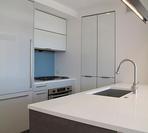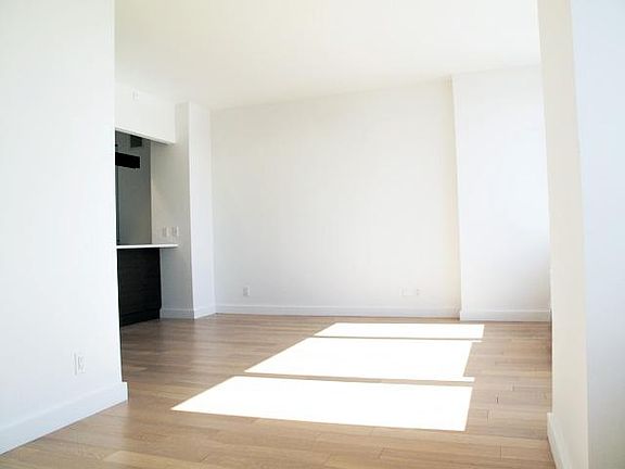 Access: Tuesdays & Thursdays 12pm to 5pm Sun drenched Alcove Studio overlooking Brooklyn through a wall of windows. The open kitchen features chic gray oak with gray lacquer kitchen cabinetry, high-end Miele Refrigerator, Bosch Cooktop and Oven, in-cabinet microwave, and white quartz countertops. Designer bathroom with deep soaking bathtub, countertop-mounted sinks, Rain Fall showerhead and porcelain floors. Throughout the apartment, enjoy hardwood floors, amazing closet space and your own washer and dryer.