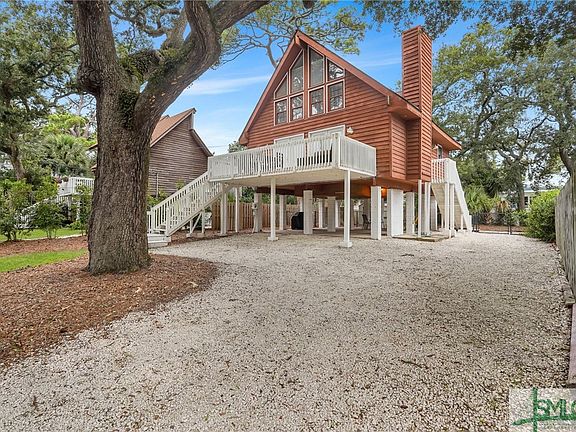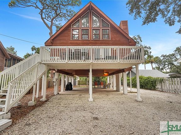 Nestled on Tybee Island’s north end, this charming A-frame home is a beach lover’s paradise. Enjoy the ocean breeze from the large front porch, overlooking a majestic live oak tree, perfect for relaxing with friends and family. The updated, open-concept kitchen with an eat-at bar connects seamlessly to the living and dining areas. The living areas boast gorgeous hardwood floors, a wood burning fireplace and shiplap accent wall, creating a cozy coastal vibe. Off of the kitchen, a newly added exterior staircase leads to the fenced in yard that your furry friend will love. A convenient bedroom and bath are on the main floor and stairs lead to two additional bedrooms, a second bath, and laundry. Floor-to-ceiling windows provide wonderful natural light. A short stroll takes you to Jaycee Park, the Tybee Lighthouse, walking trails, Tybee Post Theater, the Island’s gorgeous North Beach, and a variety of dining options, making it a wonderful place to call home!