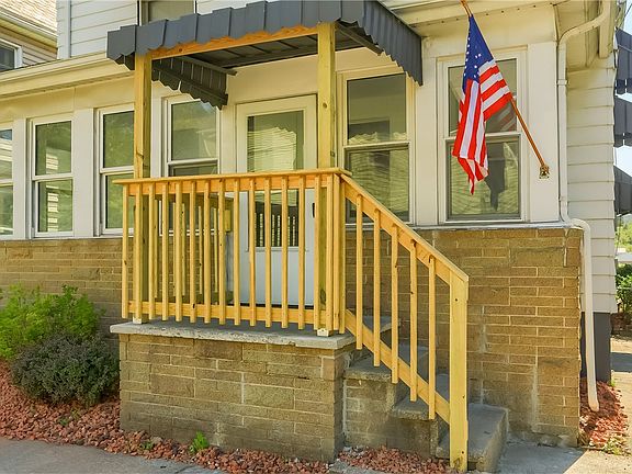 Welcome to this charming 5-bedroom home, where curb appeal and character greet you at every turn! Step inside from the cozy enclosed front porch, and the original grand staircase immediately catches your eye. Floor-to-ceiling windows fill each room with natural light, creating a warm and inviting atmosphere. The living room flows into the dining area, separated by elegant original pocket doors. The kitchen, with its solid wood cabinets, built-in shelves, and new flooring, is ideal for culinary adventures. Upstairs, three spacious bedrooms and a brand-new bath await, while the third level offers two versatile rooms for extra space. The lower level provides ample storage and laundry facilities. This move-in ready home features fresh paint, new carpet, a new roof, a new front porch, all-new blinds, and updated lighting throughout. The low-maintenance landscaping and garage complete the package. Home warranty included.