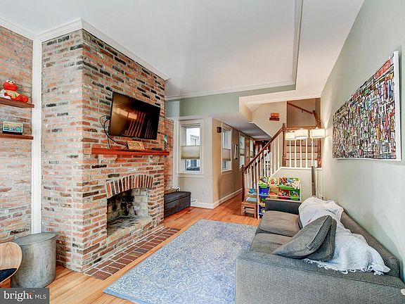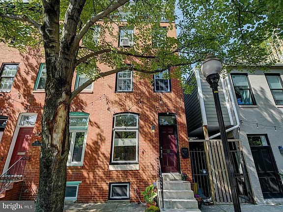 What a perfect first home on a wonderful, tree-lined, brick-paved, light-filled block! If you know Butchers Hill, you know how special this block is. If you don't, you should get to know it! This 3 story, end-unit home has hardwood floors in wonderful condition, a living room with working wood burning fireplace, and a dining area and updated cozy kitchen opening out to a charming and private sizable bricked patio. Upstairs, on the second floor you will find a bedroom , full bath and large den perfect for a home office or an additional bedroom. On the third floor, there is a large bedroom with working wood burning fireplace and tree top views. The third floor also has a full bath. This home has a wonderful layout! All this and upper level laundry as well. The home has bottom up top down custom blinds in many rooms allowing for privacy and abundant light. The home's brick exterior has been repointed out front and makes for lovely curb appeal. Located about one block from Patterson Park, 3 blocks the Johns Hopkins Hospital campus, and an easy walk to neighborhood spots like La Barrita, Charmed Kitchen, Ministry of Brewing and Water for Chocolate, as well as Fells Point and Canton.