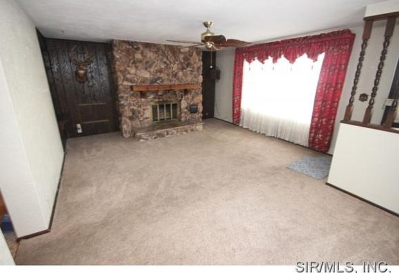 MOTIVATED SELLER Welcome to this 1 story, 2 bedroom home, boasting lots of charm and character. As you enter this charming home you will notice the new carpet and the updates in the eat-in kitchen and bath. Beautiful stone fireplace will keep you warm in the large main floor family room with large window to allow plenty of natural light. Outside features a large covered patio in the backyard to and a 1 car detached garage.All Appliances and window coverings stay. All this for a great price. Hurry do not let this home pass you by! Call the Blasingame Group to Schedule your showing today 618-219-8762. To view our MLS listings go to www.viewmetroeasthomes.com.