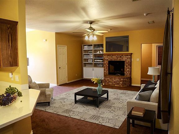 Charming brick home in northeast neighborhood. Split floor plan boasts 4 bedrooms and 3 bathrooms including full guest suite. Generous walk in closets and oversized garage gives plenty of storage. Huge walk through pantry had been used as an office! Master suite has large jetted tub with double vanities and separate shower stall. Brand new roof installed by licensed local roofer after May 2017 storm. New caret and laminate throughout. Large backyard for entertaining, relaxing, or expanding.