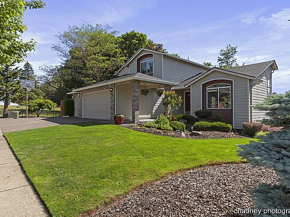 Step into this home, and you'll immediately be captivated by exceptional views of the Cascade foothills and Mt. Hood. Situated on a quiet dead end street, you won't often find both openness AND privacy like this! 3 bedrooms and 2 baths upstairs, 1 bedroom (or office) and bath on the main level as well. Gourmet kitchen opens to large family room, with a gas fireplace & French doors out to the deck. Big backyard has a private patio for entertaining. Beautiful mature landscaping. Truly a must see!