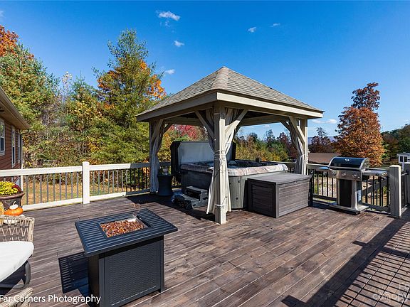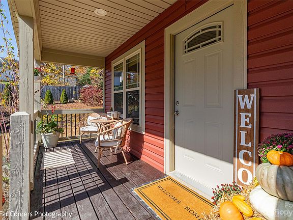 Contemporary single-level living 3 bedroom home with long range mountain views and no STR restrictions! Open floorplan layout with vaulted ceilings. Spacious living room, dining room and kitchen with stainless steel appliances, new dishwasher, kitchen island with breakfast bar. Primary bedroom has full ensuite bathroom and huge closet with double doors. Two additional bedrooms each with large closets, 2nd full bathroom and dedicated laundry room with built-in shelving all on main level. Covered front porch connects to huge wraparound deck, perfect for entertaining with gas fire pit table and 8 person hot tub with pergola pavilion for shade and weather protection. Home sits on .68 acre lot with green space and fenced/mulched area perfect for dogs, chickens or ducks! Located in Alexander, less than 15 minutes to New Leicester Hwy shopping and Woodfin riverfront parks. Just 20 minutes to downtown Asheville and downtown Weaverville.